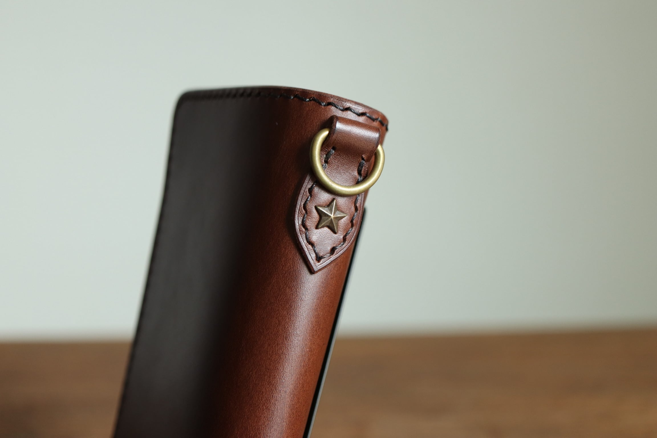 パンツのバックポケットに収まりのよい[MIDDLE WALLET-01]。従来のミドルウォレットよりさらに使い勝手と堅牢さを追求したものになります。