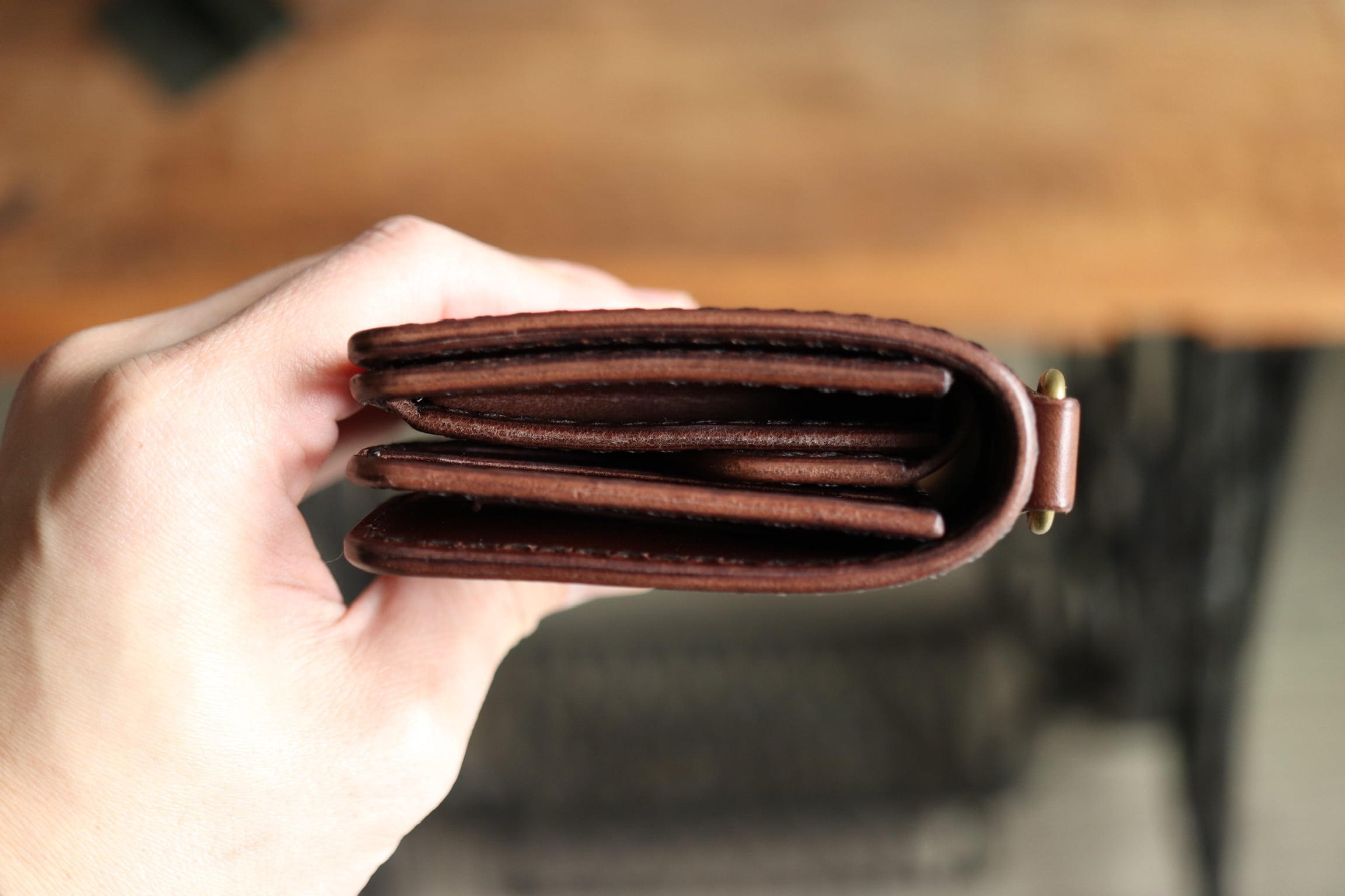 [MIDDLE WALLET-01]はサイズ感ら縦横5:8の黄金比で設計されており、人が1番馴染みやすい比率になっております。