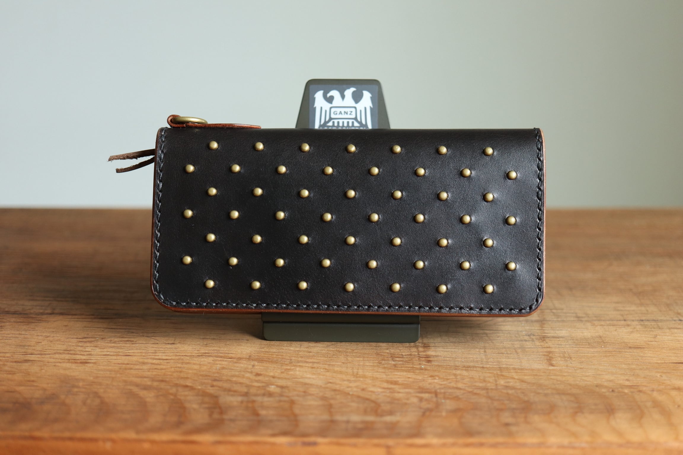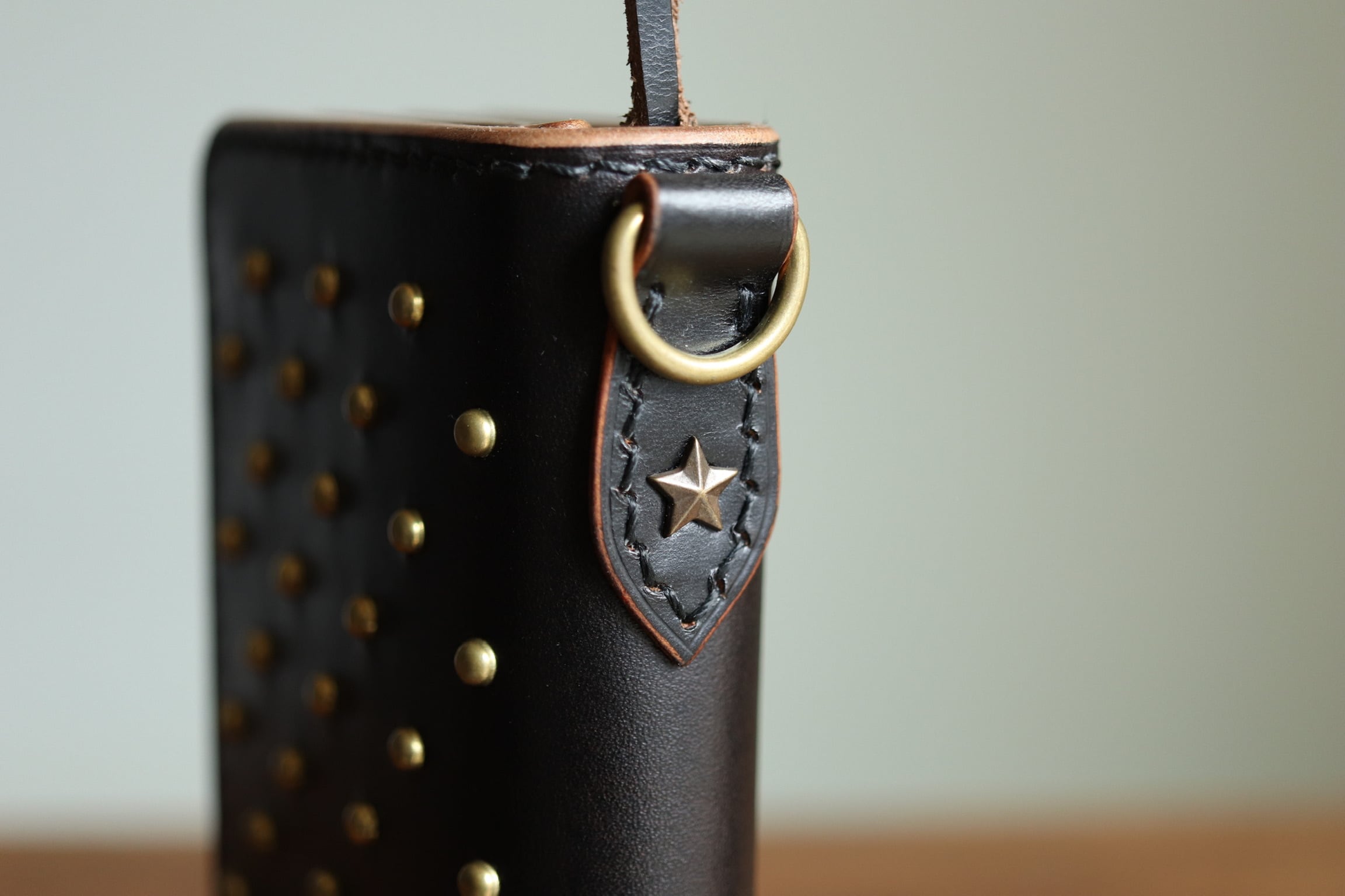 外装、内装ともに手染めの茶芯ブラック仕様、スタッズカスタムと豪華な仕様になっています。